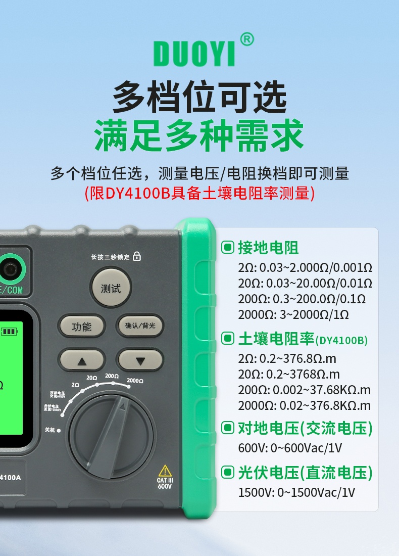 DY4100A/DY4100B接地电阻测试仪充电桩接地测量仪光伏电压防雷电阻仪